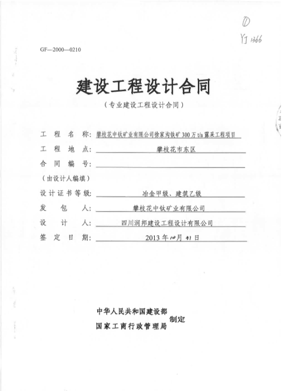 攀枝花中鈦礦業有限公司徐家溝鐵礦300萬t每a露采工程項目