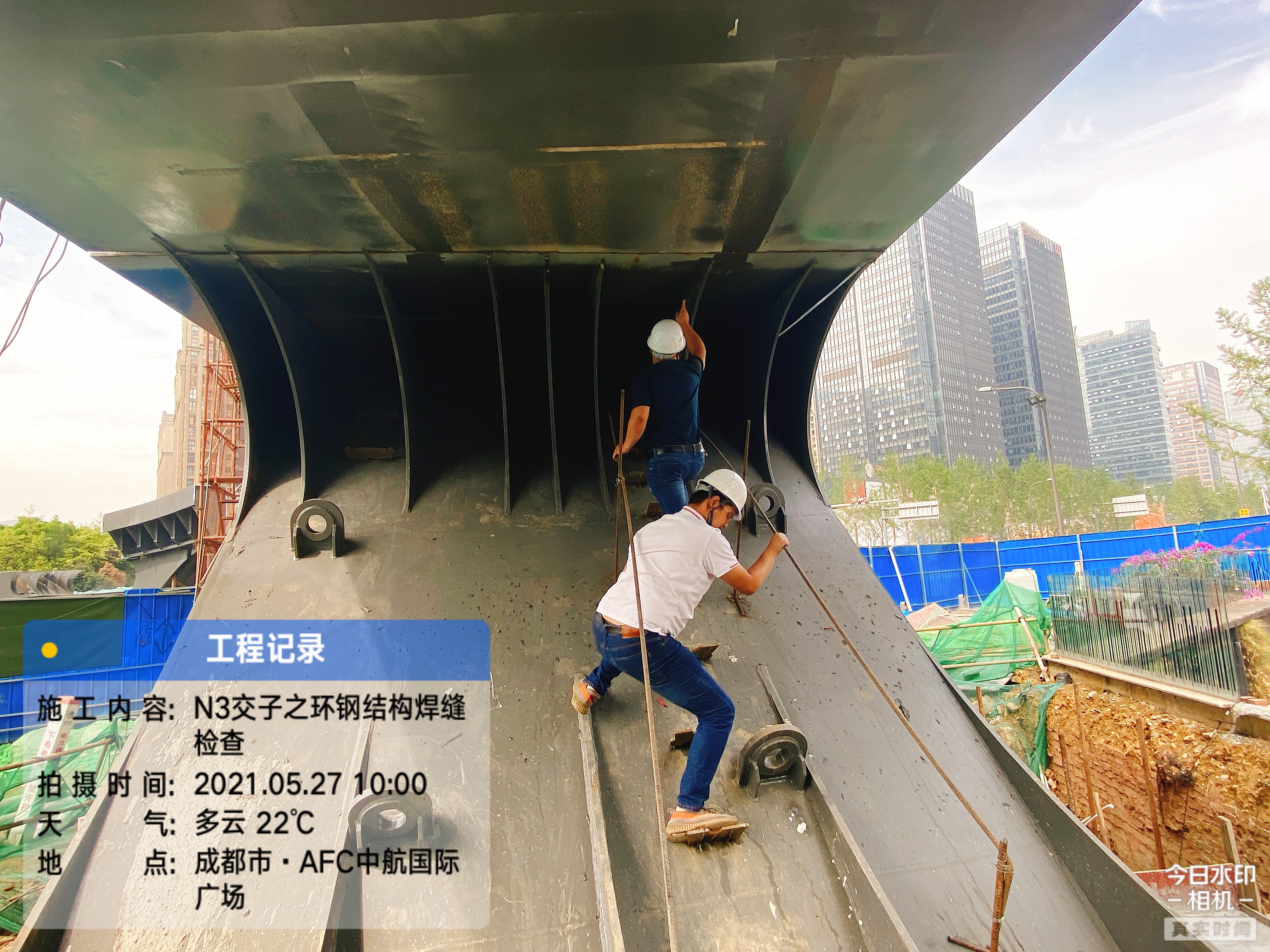 交子之環大橋內直徑達96米,外直徑達114米,鋼結構,總重量達3274噸,集通行、休閑、商業等多功能為一體的多元場景的人行天橋。在施工過程中采用了三維數字模型、焊接機器人仿真模擬焊接等新工藝,加大了監督管理的難度。